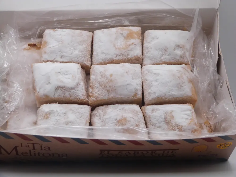 Los Nevaditos de La Tía Melitona son dulces hojaldrados y suaves, espolvoreados con azúcar glas como copos de nieve. Artesanales y con un toque especial de almendra tostada y aguardiente, son un clásico irresistible para cualquier ocasión.