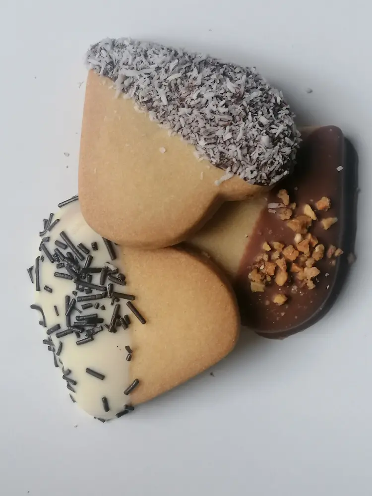 Estas pastas de La Tía Melitona son un capricho para los amantes del cacao. Chocolate negro con coco, chocolate con leche y crocante de almendra, y chocolate blanco con fideos de chocolate: un surtido artesanal irresistible, hecho con mantequilla y recetas tradicionales.